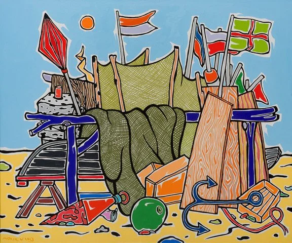 Doch wo findet Moritz Anregungen für seine poppigen Arbeiten mit meist heiteren Motiven in farbenfroher Formensprache? Die Antwort darauf berührt unmittelbar seine eigene Biografie und zugleich die Kulturgeschichte seit der Antike bis zur Gegenwart, aus der er unendlich viele Impulse schöpft. In den meisten Bildtiteln verweist er auf seine Vorbilder und animiert damit den Betrachter zur vergleichenden Bildrecherche.