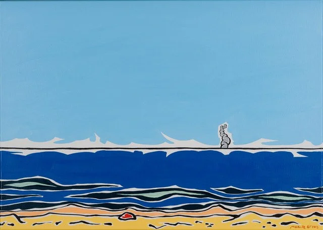 Ein Beispiel dafür ist eins seiner letzten Strandbilder in stark redu-zierter Form- und Farbgebung. Über dem kadmiumgelben Strand und ultramarinblauen Meer weitet sich der manganblaue Himmel. Eine entspannte Szene am menschenleeren, sauberen Sandstrand könnte man meinen, würde da nicht am Horizont eine hellgraue Dampfwolke aufsteigen. Sie wird umrahmt von energiegeladenen Lichtfugen, die sich blitzartig über den gesamten Horizont ausbreiten.